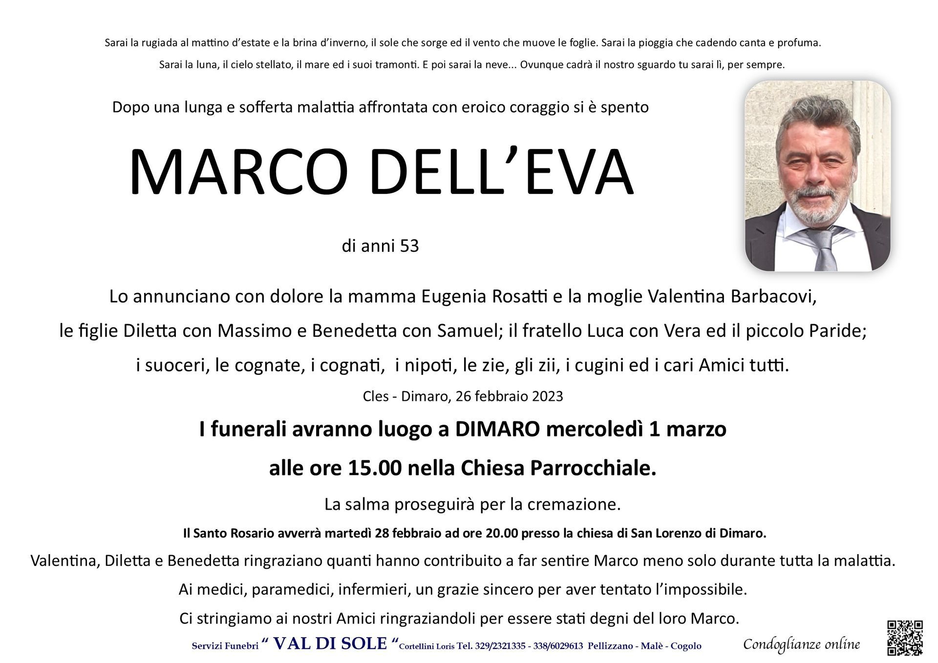 Per l’organizzazione dei funerali in provincia di Trento, le onoranze funebri Genetti nella sede di Cles e Cortellini Loris in Val di Sole sono a tua completa disposizione.