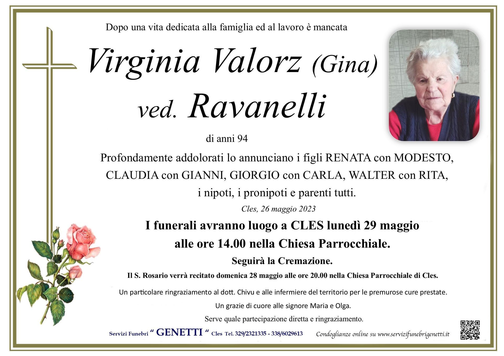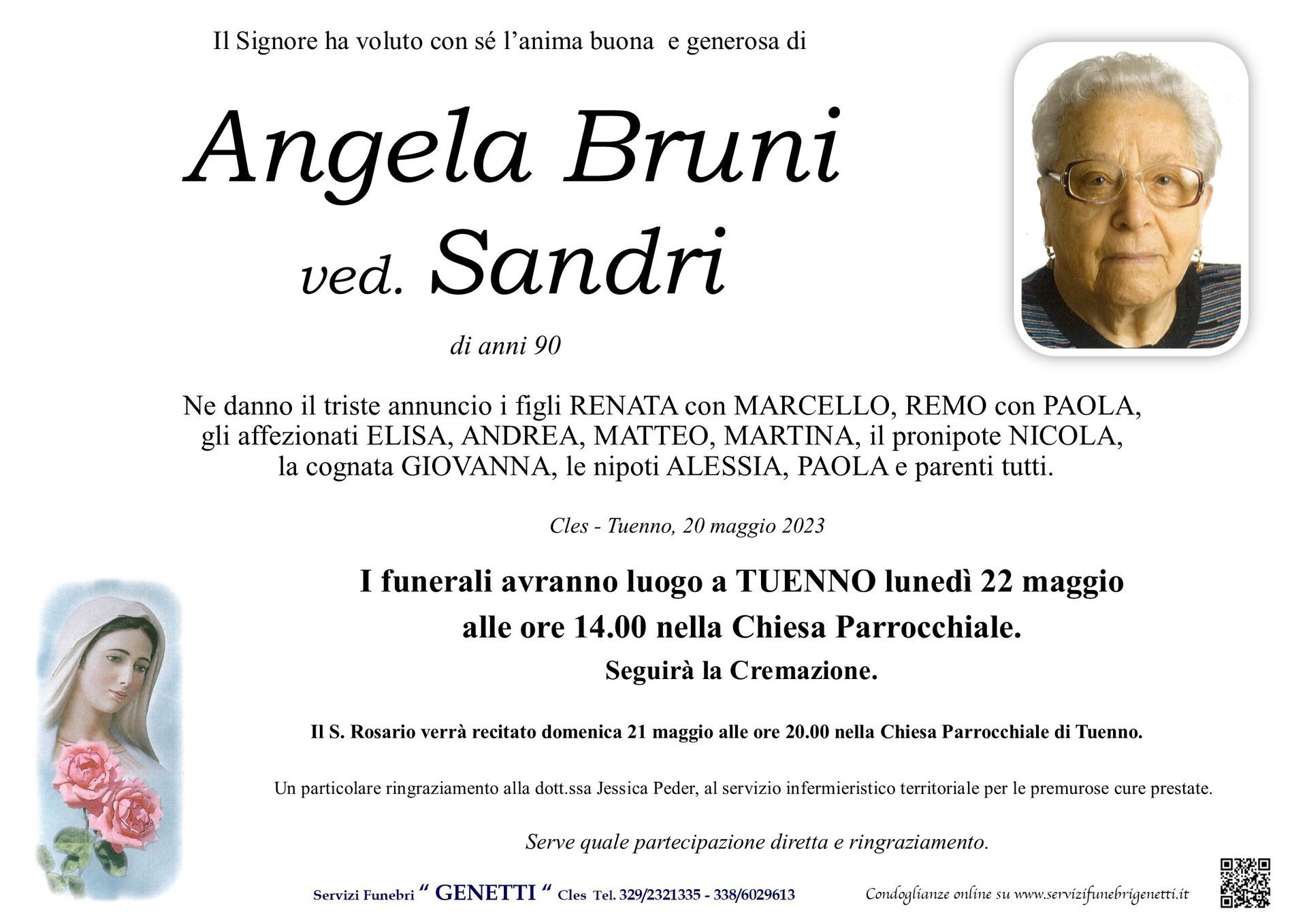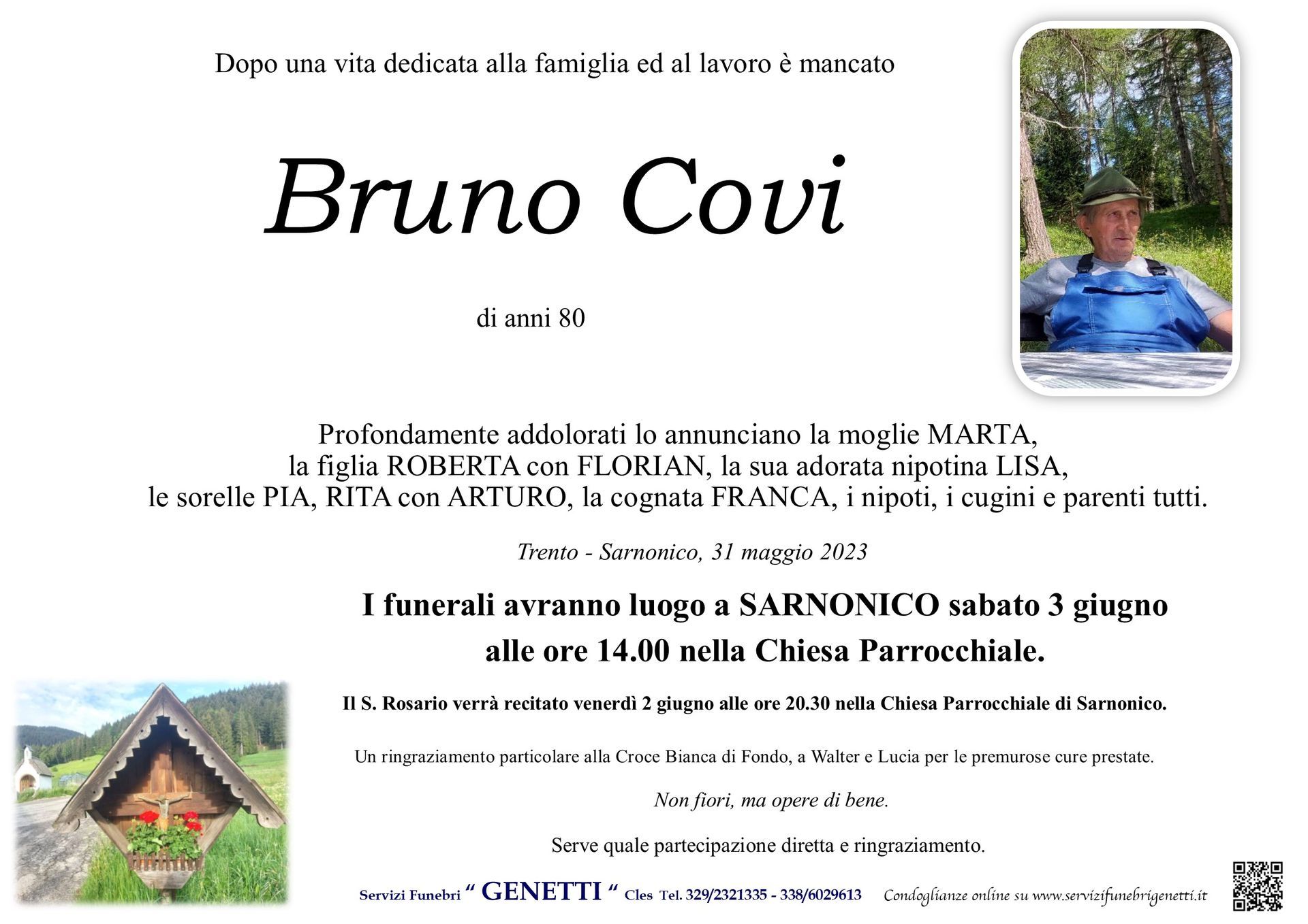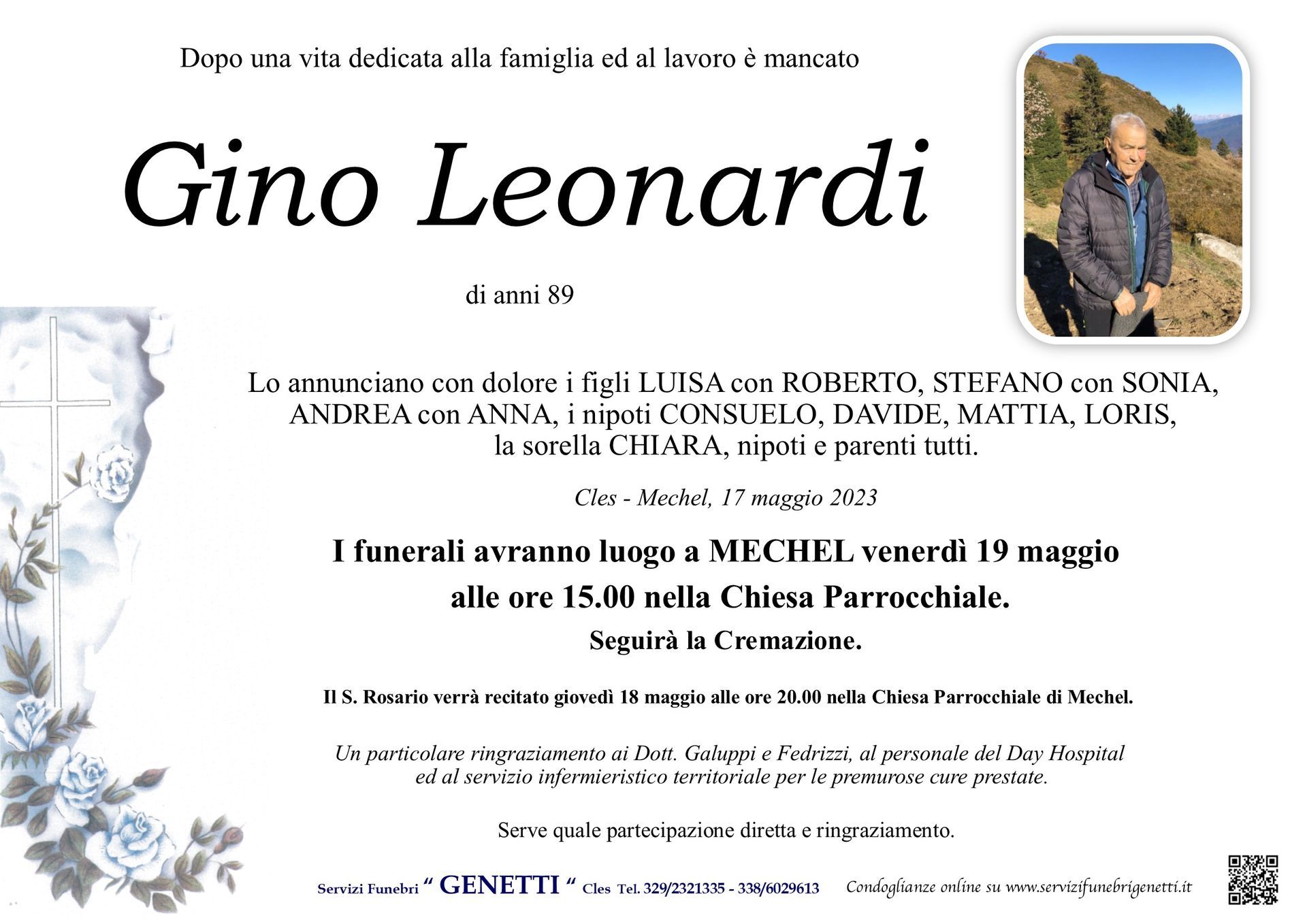 Per l’organizzazione dei funerali in provincia di Trento, le onoranze funebri Genetti nella sede di Cles e Cortellini Loris in Val di Sole sono a tua completa disposizione.
