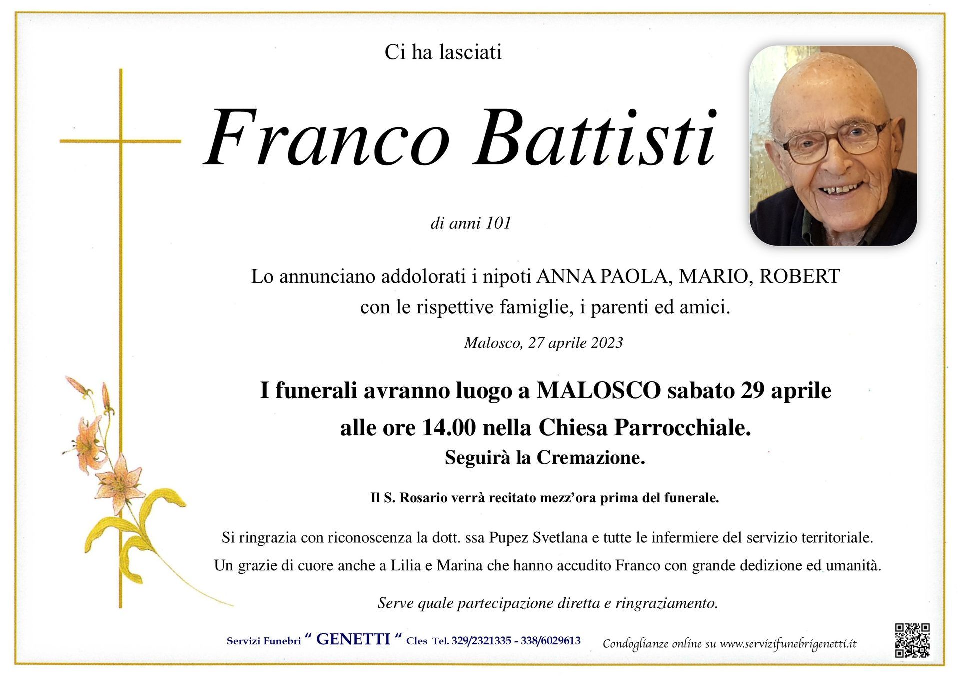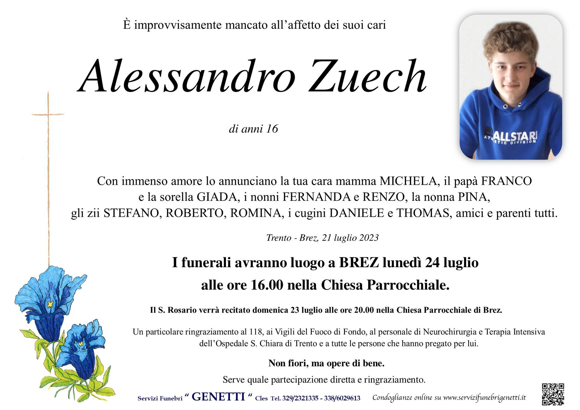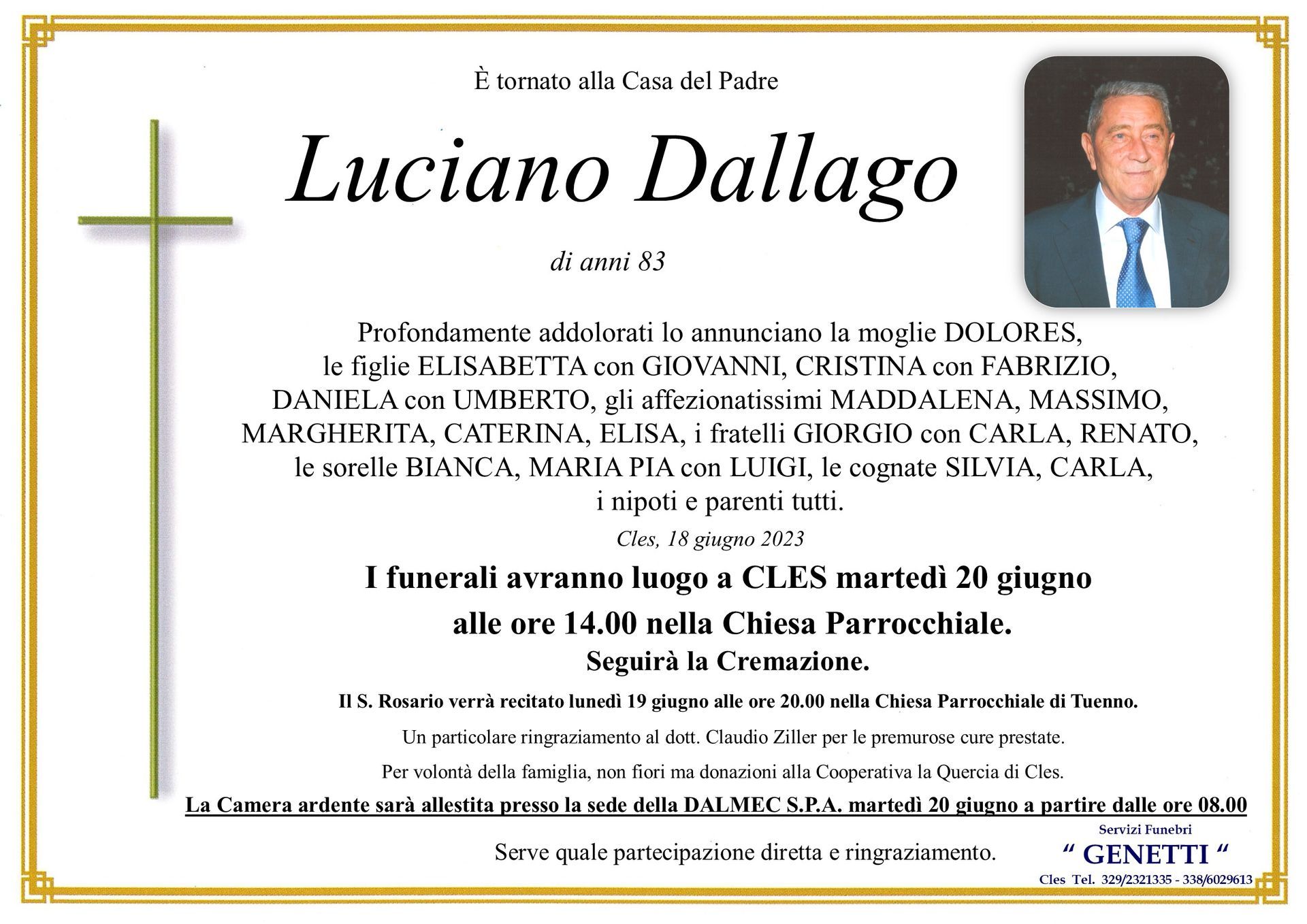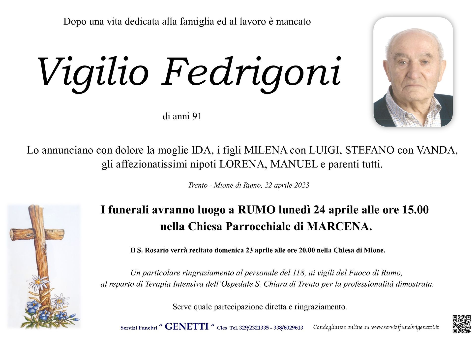 Per l’organizzazione dei funerali in provincia di Trento, le onoranze funebri Genetti nella sede di Cles e Cortellini Loris in Val di Sole sono a tua completa disposizione.